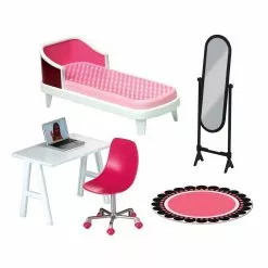 Entrez dans l’univers de Marinette où elle aime créer et passer du temps avec ses amis. 1 univers de jeu de 60 cm. De nombreux accessoires, Le bureau de Marinette, sa chambre. Une fenêtre qui s’ouvre pour accéder au “rooftop”. Tout un univers à l’echelle des poupées 26 cm. Poupée non incluse.