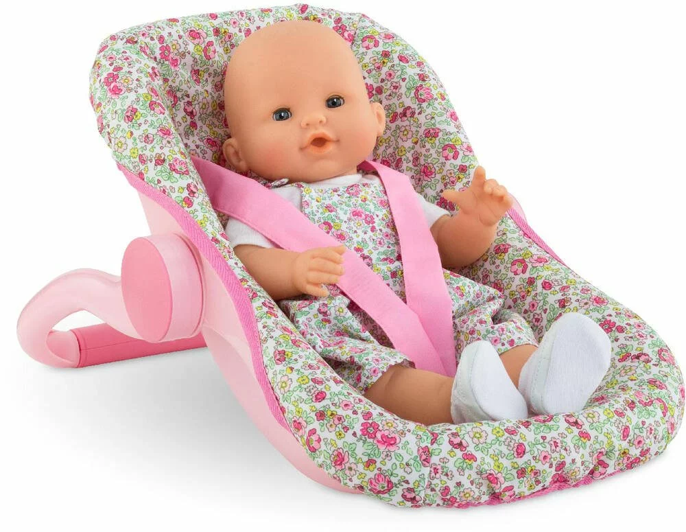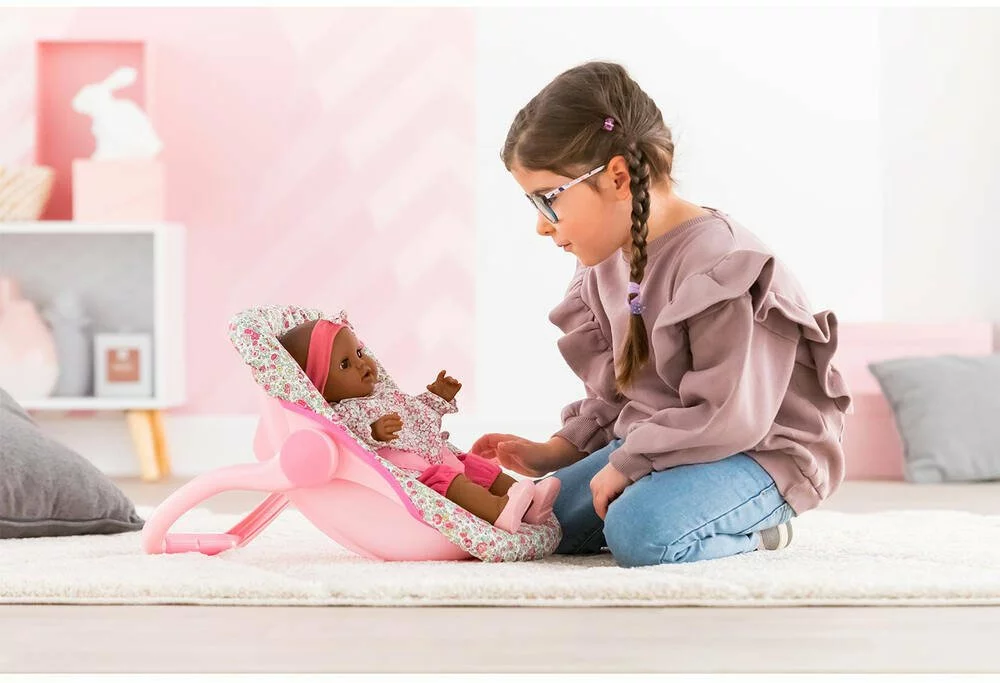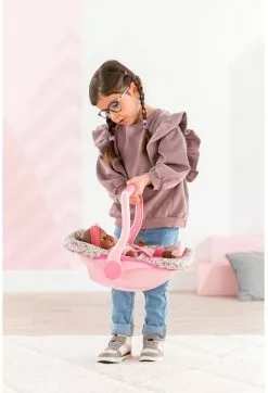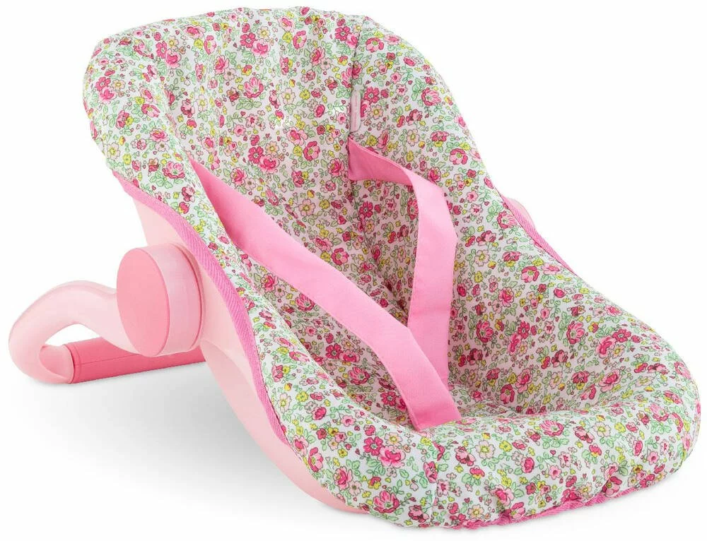 C’est l’heure de partir ! Le porte-poupon fleuri permet d’emmener partout les grands poupons de 36 à 42 cm. Une fois son grand poupon bien installé dans le siège, il faut vérifier que les anses le maintiennent bien pour qu’il soit en sécurité ! Le porte-poupon est léger et par conséquent facilement maniable. Le porte-poupon fleuri est équipé d’une poignée à 3 positions qui permet tour à tour de porter son poupon, de le bercer ou tout simplement de l’installer en position assise.