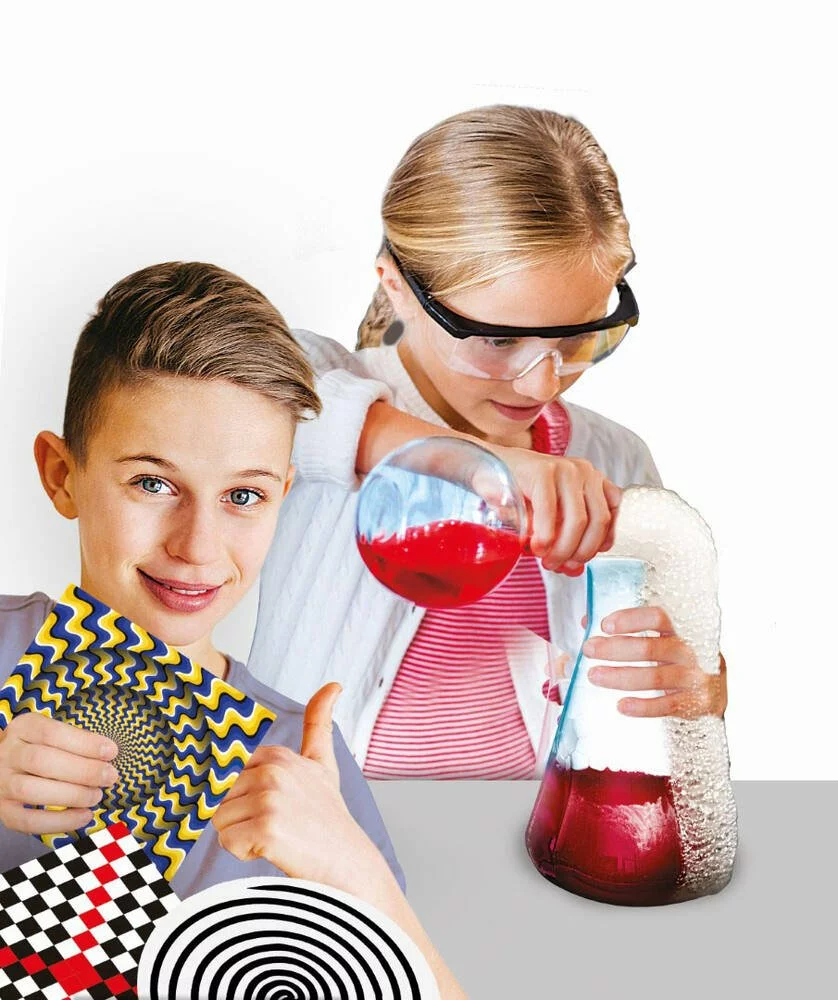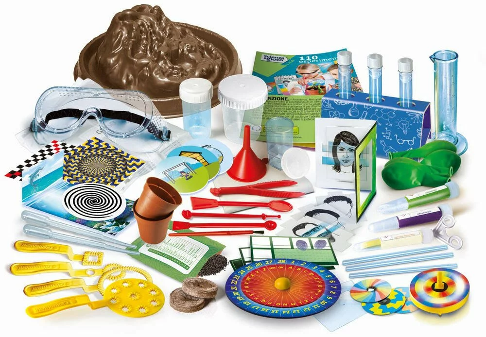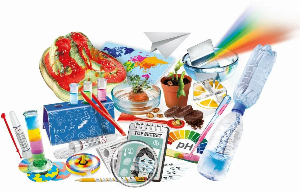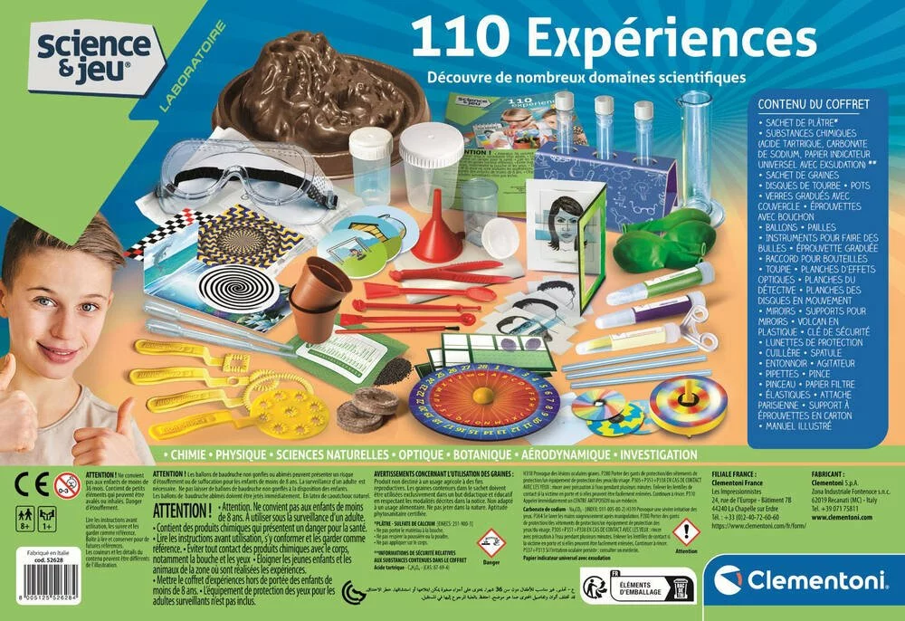 Êtes-vous prêt à expérimenter et à découvrir les secrets de la science ? Avec cet incroyable coffret de plus de 100 expériences, le plaisir ne s’arrête jamais ! Il contient tout le nécessaire pour réaliser des expériences et aborder le monde de la chimie, de la physique, de la botanique et de l’optique de manière simple et amusante. Expérimentez en extérieur ou en intérieur et laissez-vous surprendre en observant les phénomènes et les réactions déclenchés par vos expériences ! Le manuel illustré accompagne l’enfant dans toutes les phases de l’expérience, pour jouer en toute sécurité.