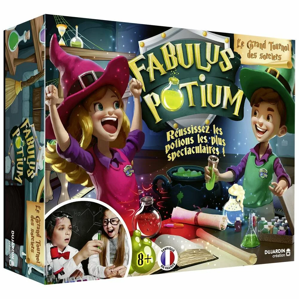 A 2 sorciers, chacun avec son chaudron, il faudra, ensemble, comprendre les formules du grimoire, manipuler les ingrédients et faire les bons mélanges pour réaliser des potions impressionnantes. Est-ce de l’huile de Mandragore ou du sang de licorne qu’il faut mélanger avec le serpent séché ? Explosions, mousses, liquide hypnotique et lampe à lave seront, entres autres, au programme des sorciers ! Comprends les formules du grimoire et manipule les ingrédients pour réaliser des potions ! Au programme : explosions, mousses ou lampe à lave ! Accessoires inclus.